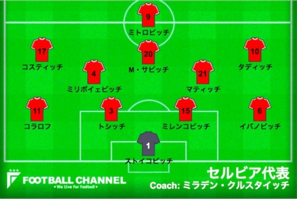 スタメン速報 サッカーセルビア代表 E組第1節コスタリカ対セルビア ロシアw杯 フットボールチャンネル